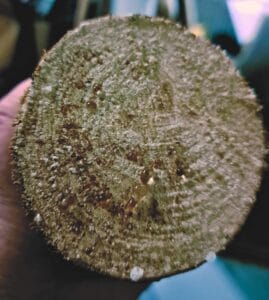 Työpajassa painetaan paperille puun vuosirenkaat ja summataan synttärien kunniaksi, miten puut vanhenevat, kasvavat korkeutta ja leveyttä, ja niihin kehittyy vuosirenkaita.